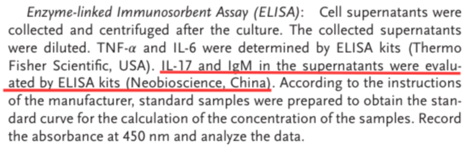 在本研究中,使用了欣博盛生物(NeoBioscience Technology Co., Ltd.)提供的 Human IL-17和IgM ELISA kit。